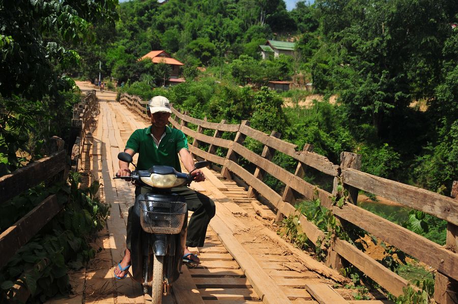 The old wooden bridge that links the west and east of Ban Xor village is no longer accessible for cars and trucks, and the villagers are eagerly anticipating the new bridge, built with Chinese aid.