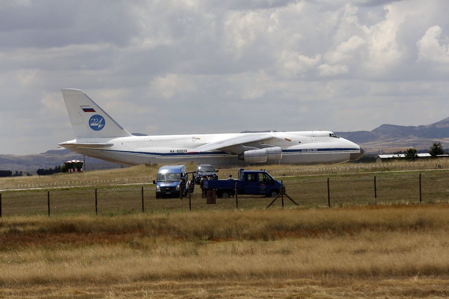A Russian Antonov military cargo plane, carrying parts of the S-400 missile defense system from Russia, lands at the Murted Air Base in Ankara, Turkey, on July 12, 2019. (Xinhua)