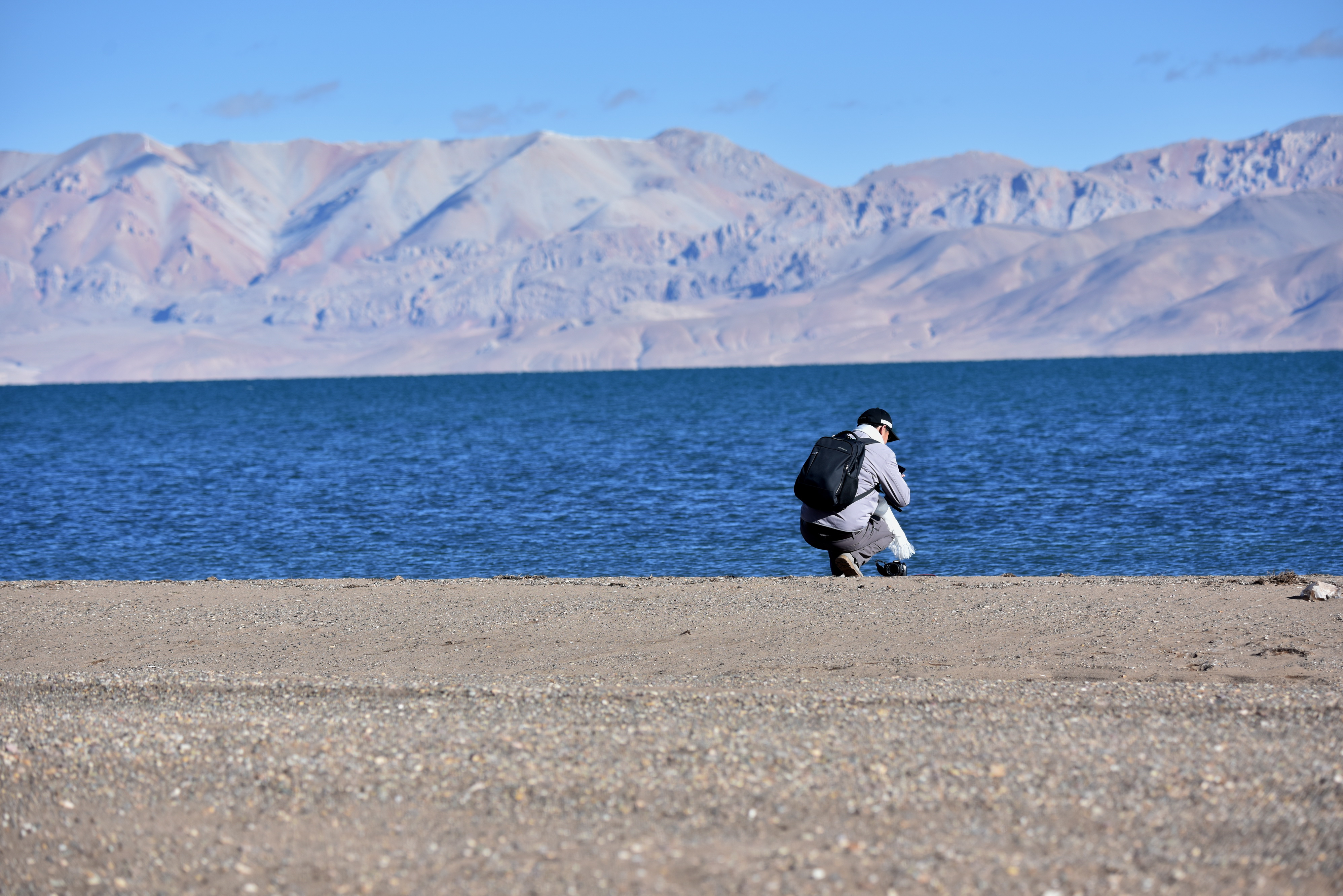 A tourist views Cering Co Lake in Xainza County, Nagqu, southwest China's Tibet Autonomous Region, Oct. 12, 2019. (Xinhua/Zhou Jinshuai)