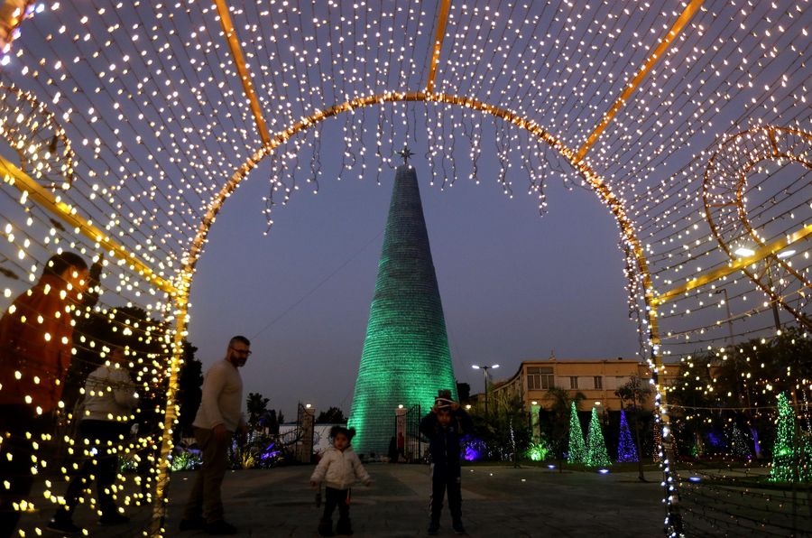 BEIRUT, Dec. 18 (Xinhua) -- Lebanon's municipality of Chekka lightened a Christmas tree on Monday which is expected to win the Guinness World Record for being the largest model made from plastic bottles.