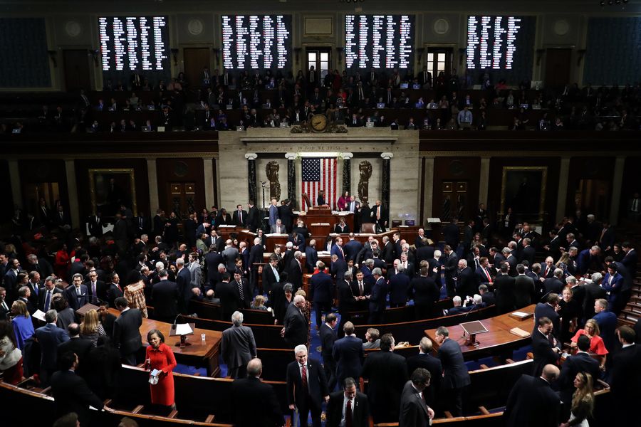 House members vote on two articles of impeachment against U.S. President Donald Trump in Washington D.C. Dec. 18, 2019. (Chip Somodevilla/Pool via Xinhua)