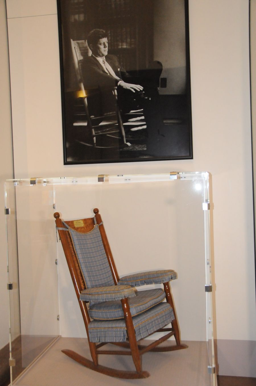 The Kennedy Rocking Chair is displayed at New-York Historical Society (NYHS) with a picture of former U.S. president John F. Kennedy in New York, the United States, Dec. 19, 2019. (Xinhua/Liu Yanan)
