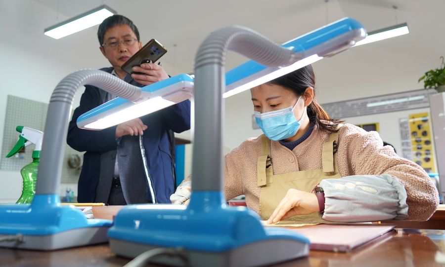 A visitor is taking photo of a restorer at China's first museum on antique book repairing, an endangered craft vital to the country's huge inventory of ancient texts. (Xinhua/Wang Xi)