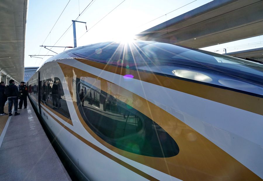 The G8811 high-speed train bound for Taizicheng Railway Station at Beijing North Railway Station in Beijing, capital of China, Dec. 30, 2019. (Xinhua/Xing Guangli)