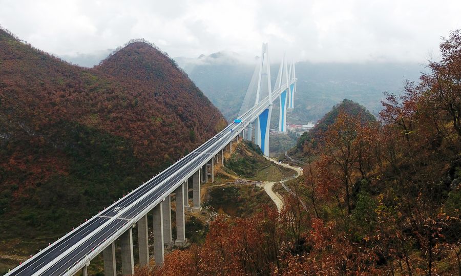 Located in Bouyei-Miao Autonomous Prefecture of Qiannan, the bridge, a colossal cable-supported viaduct that spans 2,135 meters across a canyon, will serve as a major connection on the Pingtang-Luodian Expressway.
