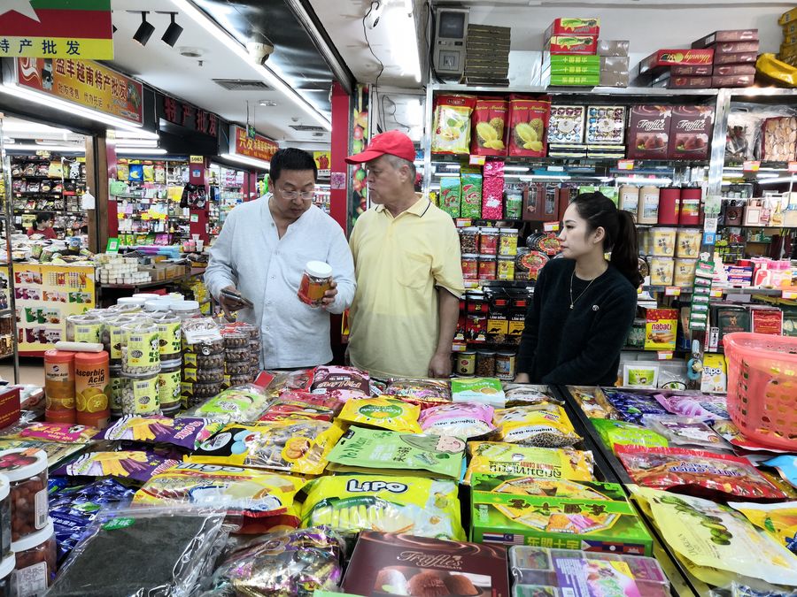 Customers from Harbin shop in a store run by Vietnamese merchant Nguyen Thu Hoai in Dongxing, south China's Guangxi Zhuang Autonomous Region, Dec. 27, 2019. (Xinhua/Guo Yifan)