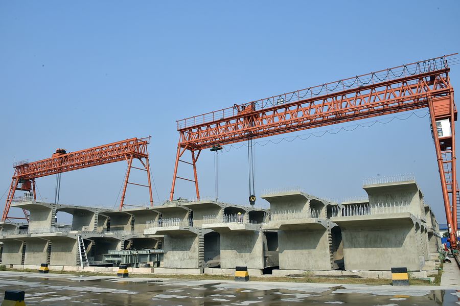 Chinese engineers erect 1st box girder of Bangladesh's longest railway viaduct