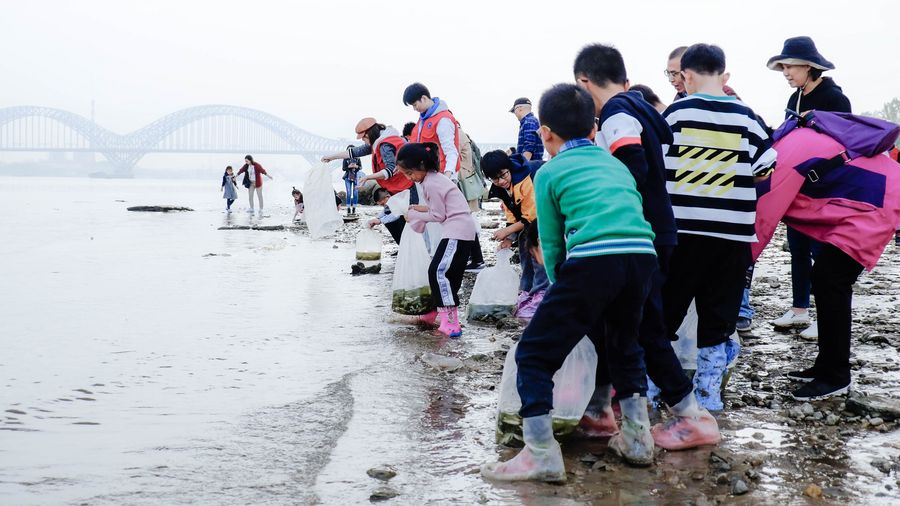 Citizens release fry voluntarily into the Yangtze River in Nanjing, capital of east China's Jiangsu Province, Nov. 15, 2019. (Nanjing Yangtze Finless Porpoise Conservation Association/Handout via Xinhua)