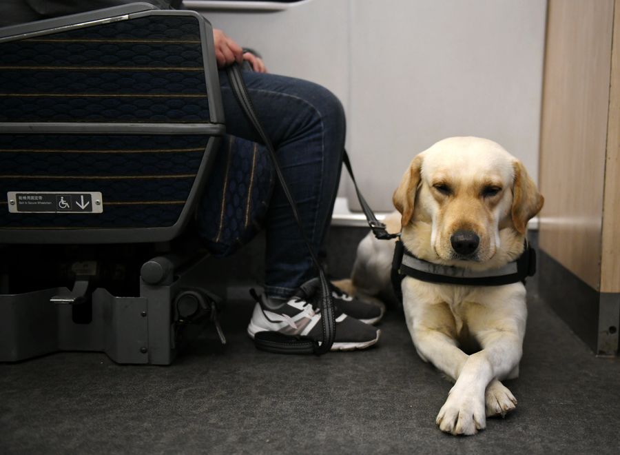 According to Chinese regulations, passengers are banned from carrying animals on the trains. However, the China Railway Corporation and the China Disabled Persons' Federation formulated a regulation in 2015 allowing visually impaired people to take guide dogs on trains.