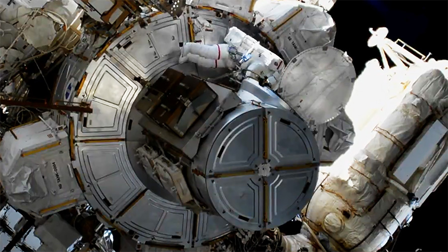 Spacewalkers in the space lab have till now spent a total of 58 days, 23 hours, and 12 minutes working outside the station.
