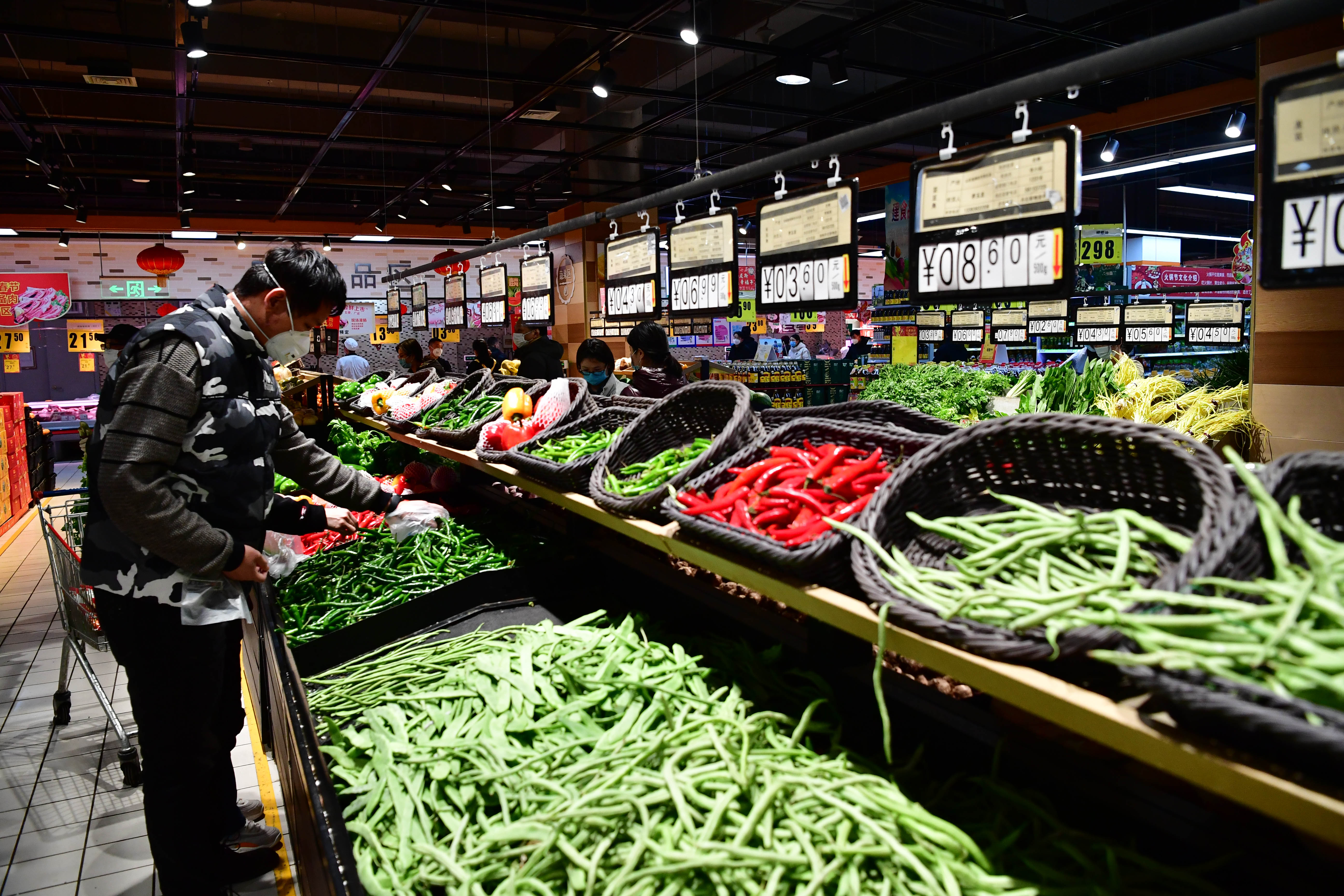 Citizens buy vegetables at a supermarket in Zhengzhou, central China's Henan Province, Jan. 30, 2020. (Xinhua/Feng Dapeng)