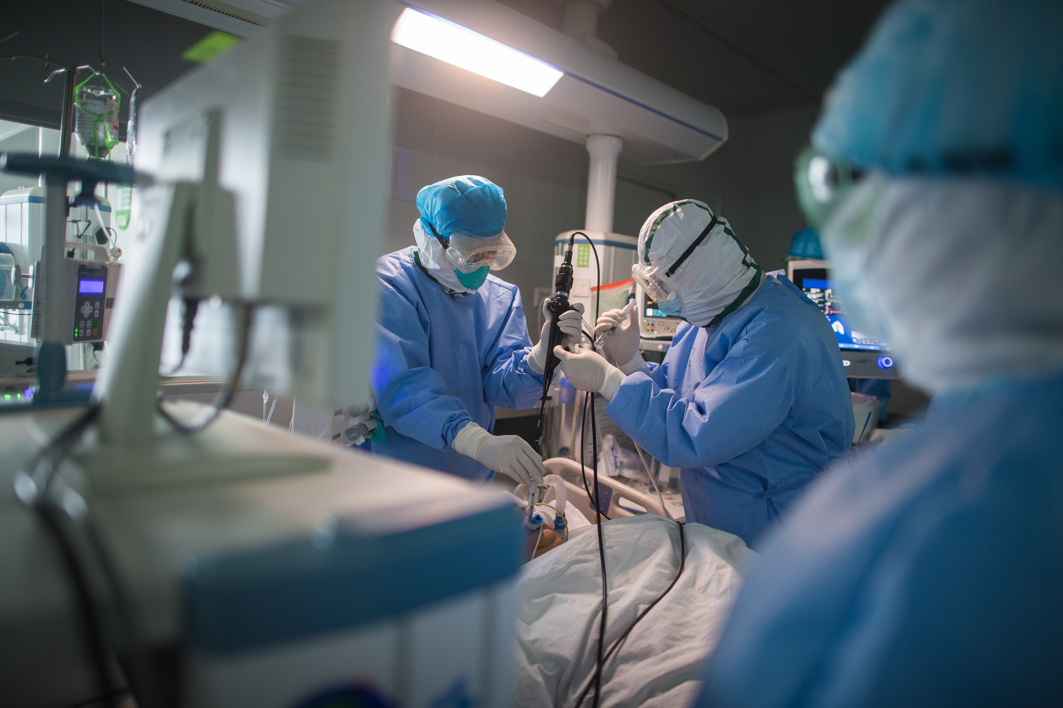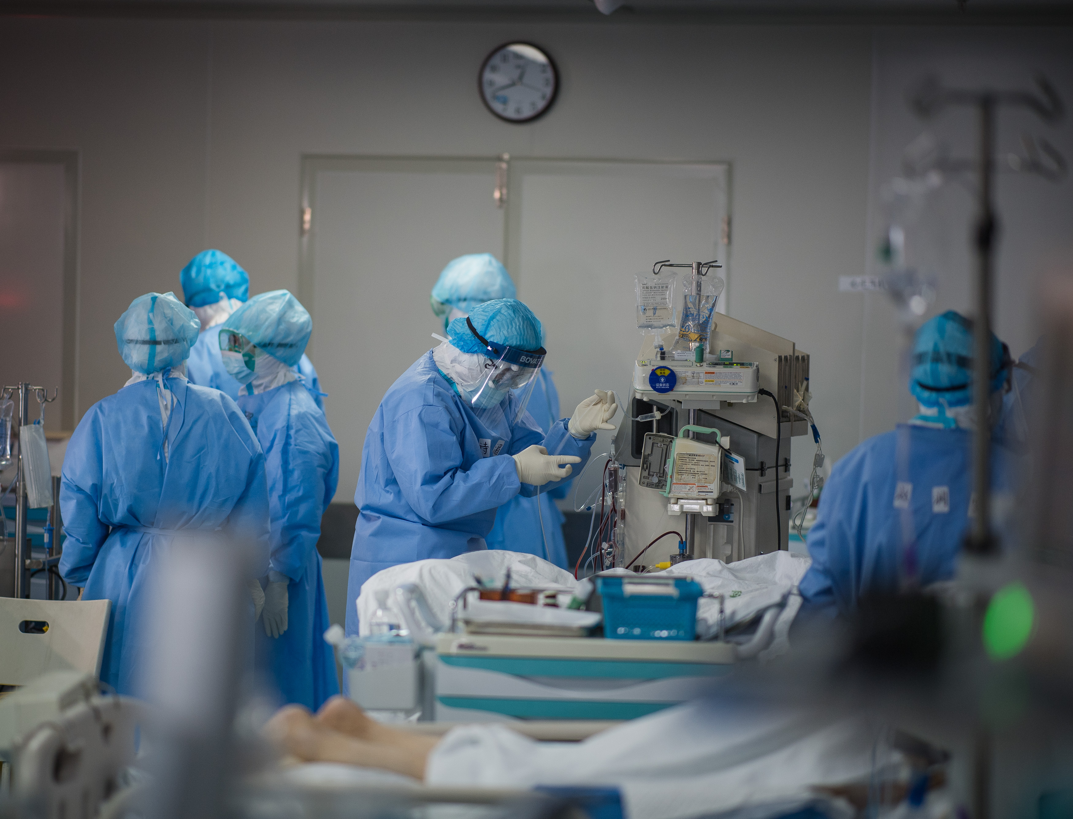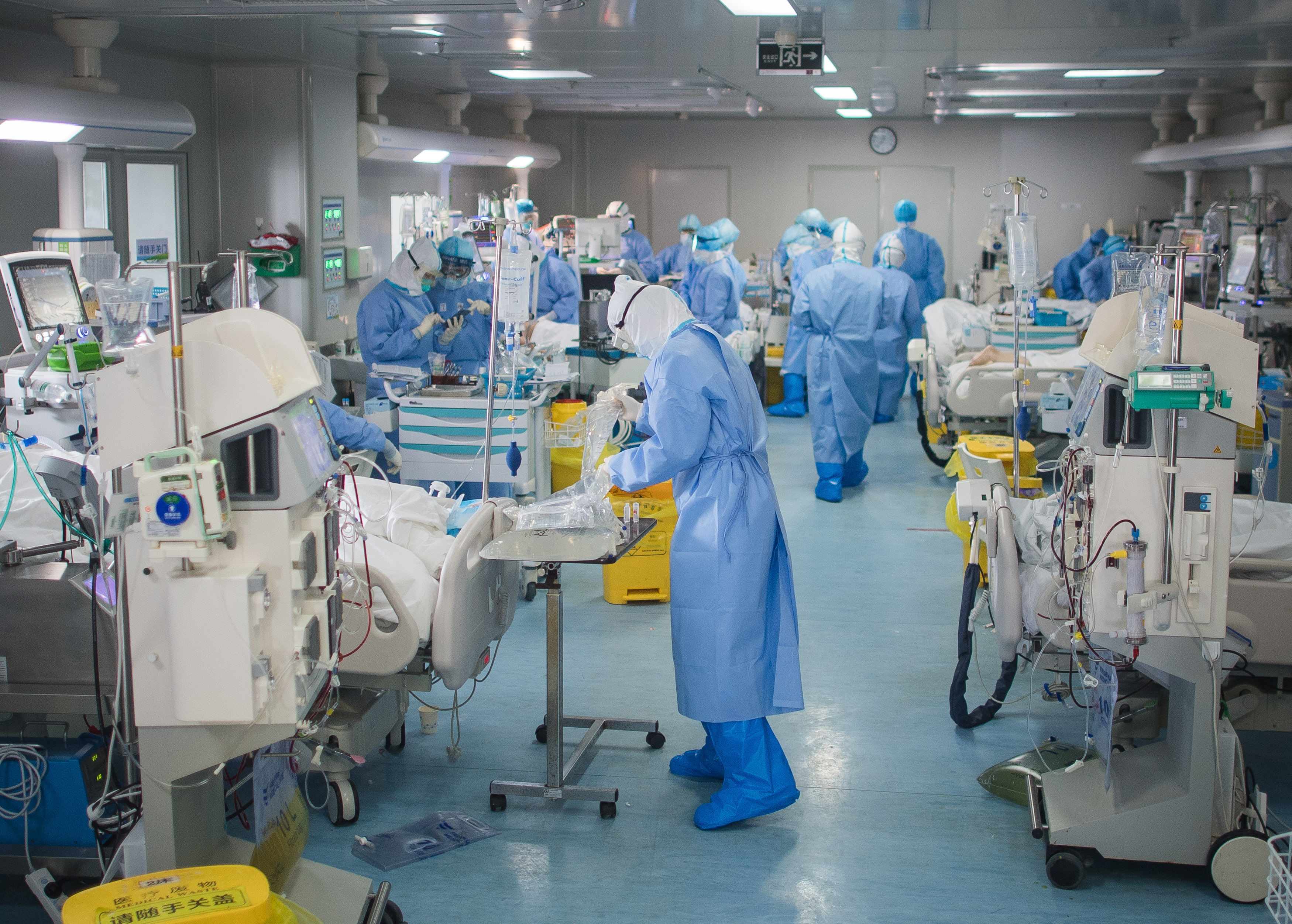 Medical workers are busy at the ICU (intensive care unit) of Wuhan pulmonary hospital in Wuhan, central China's Hubei Province, March 19, 2020. (Xinhua/Xiao Yijiu)