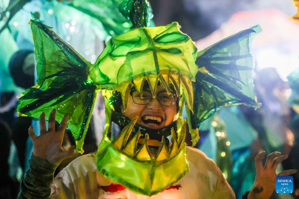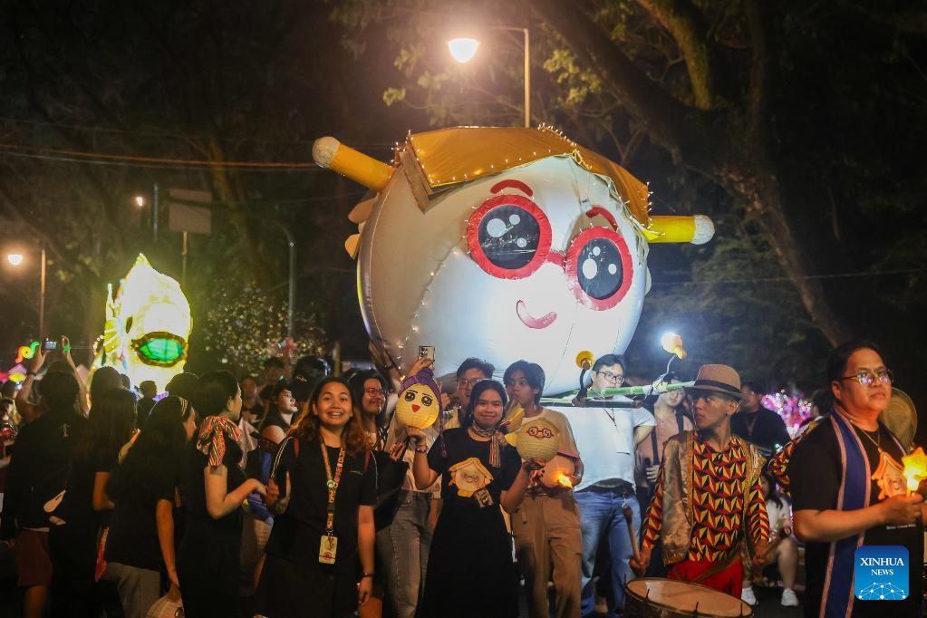 People in costumes march with colorful lanterns during the annual Lantern Parade at the University of the Philippines in Quezon City, the Philippines, Dec. 17, 2025. (Xinhua/Rouelle Umali)