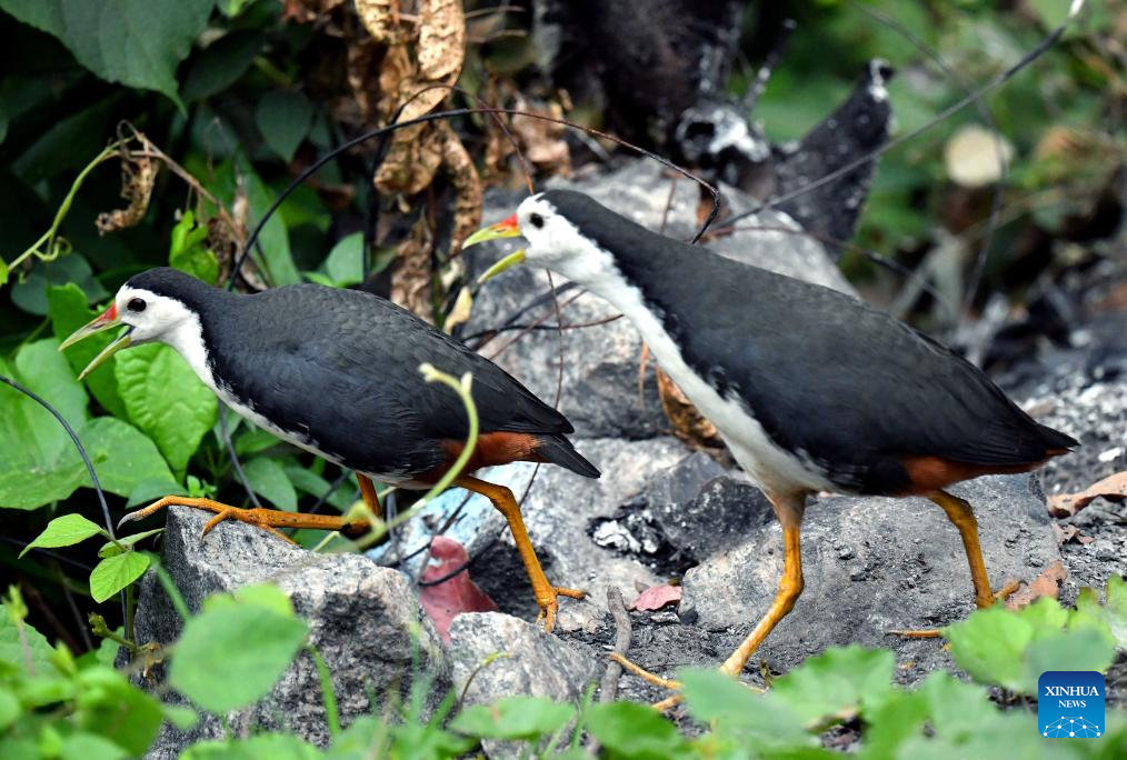 White-breasted waterhens are pictured in a wetland area near Colombo, Sri Lanka, on Feb. 15, 2026. (Photo by Ajith Perera/Xinhua)