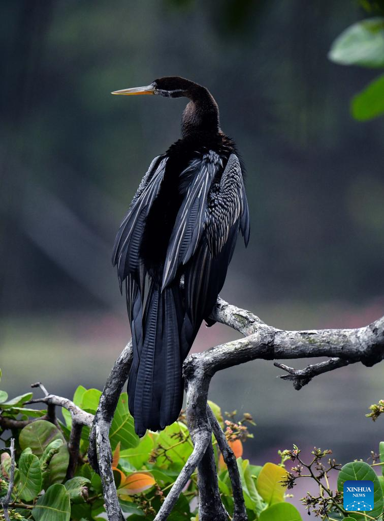 An anhinga is pictured in a wetland area near Colombo city, Sri Lanka, on Feb. 15, 2026. (Photo by Ajith Perera/Xinhua)