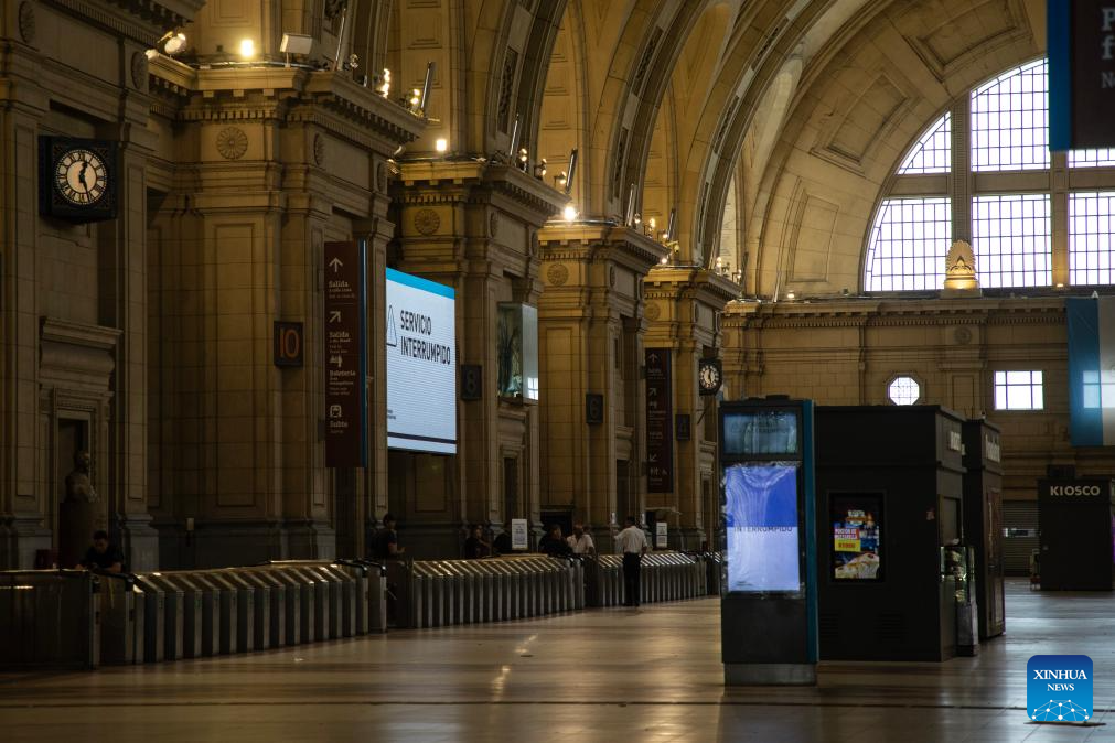 Photo shows the interior of a closed train station, in Buenos Aires, Argentina, on Feb. 19, 2026. Argentina's main labor unions started a nationwide 24-hour strike on Thursday in protest against a labor reform bill under debate in the Chamber of Deputies, after it was approved by the Senate on Feb. 12. (Photo by Martin Zabala/Xinhua)