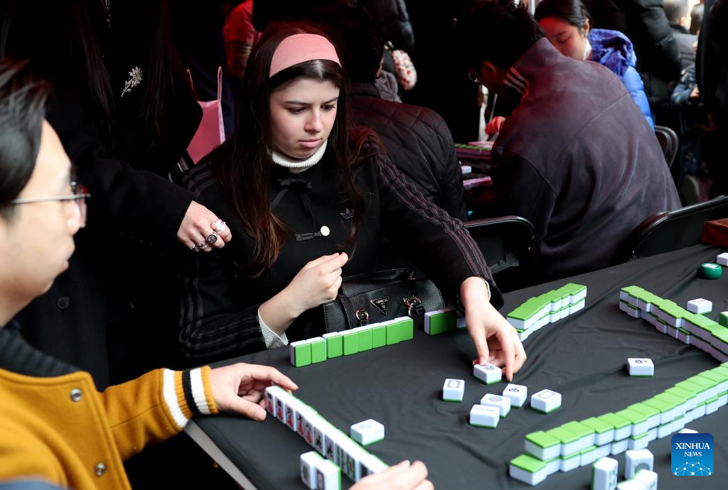 People play Mahjong during a Chinese New Year celebration at Camden Market in London, Britain, Feb. 21, 2026. (Xinhua/Li Ying)