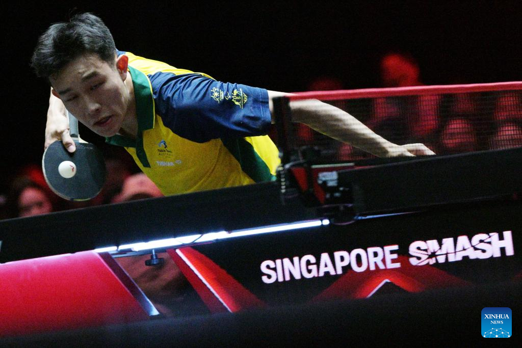 SINGAPORE, Feb. 22 (Xinhua) -- The 2026 World Table Tennis Singapore Smash began its main draw on Sunday, with China's Wang Chuqin, Lin Shidong, Zhou Qihao, Chen Xingtong, Wang Manyu and Chen Yi advancing to the round of 32.