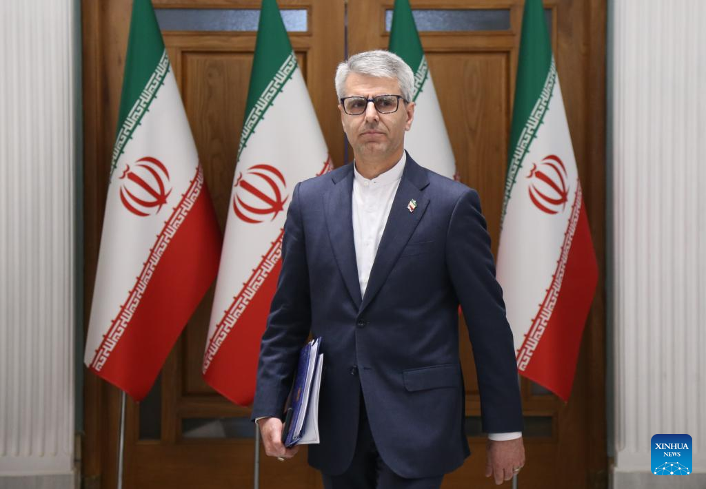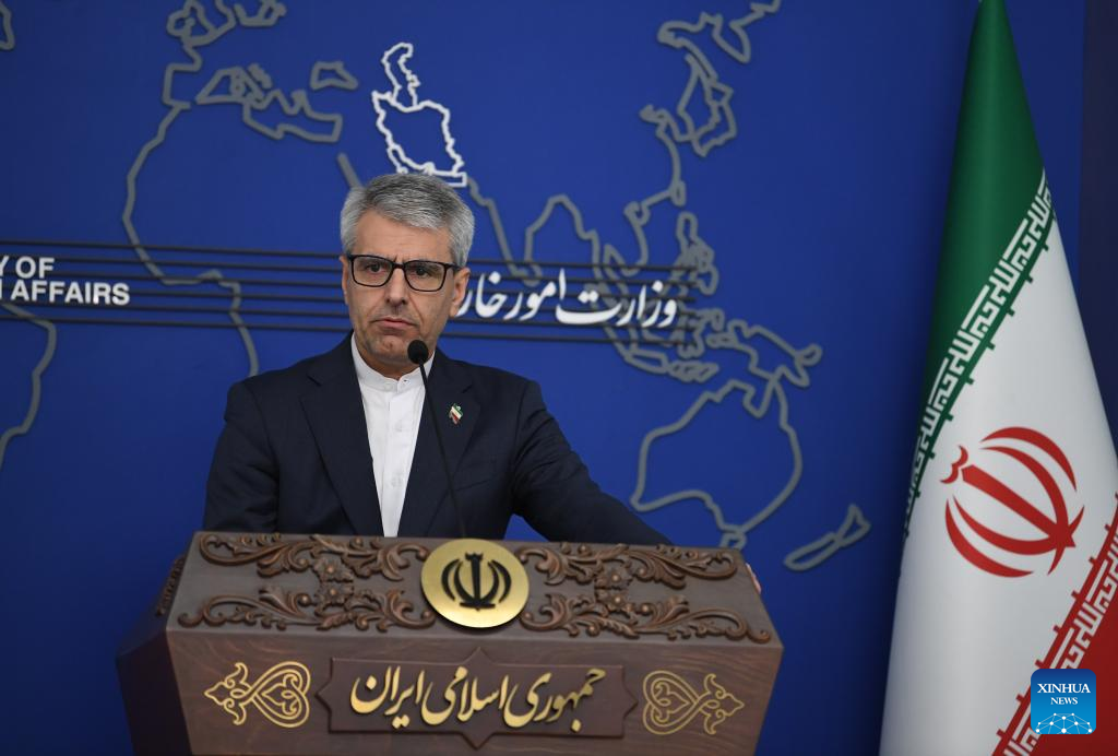 Iranian Foreign Ministry spokesman Esmaeil Baghaei is pictured during a weekly press conference in Tehran, Iran, on Feb. 23, 2026. (Xinhua/Shadati)