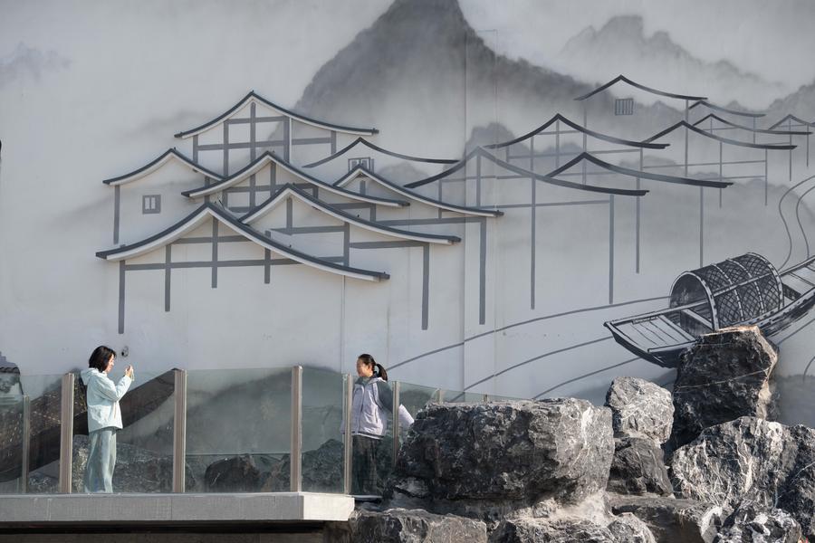A tourist poses for photos at the Modian old street in Hefei, east China's Anhui Province, March 14, 2026. (Xinhua/Zhang Duan)