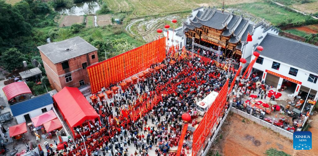 A performance of Ganju Opera is staged in Hougang Town of Leping City, east China's Jiangxi Province, Feb. 9, 2026. (Leping Ganju Opera Troupe/Handout via Xinhua)