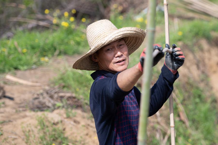 TONGLING, April 6 (Xinhua) -- Around the Qingming Festival, farmers in Tongling are busy ridging fields, planting white ginger, applying fertilizer, and building ginger sheds.