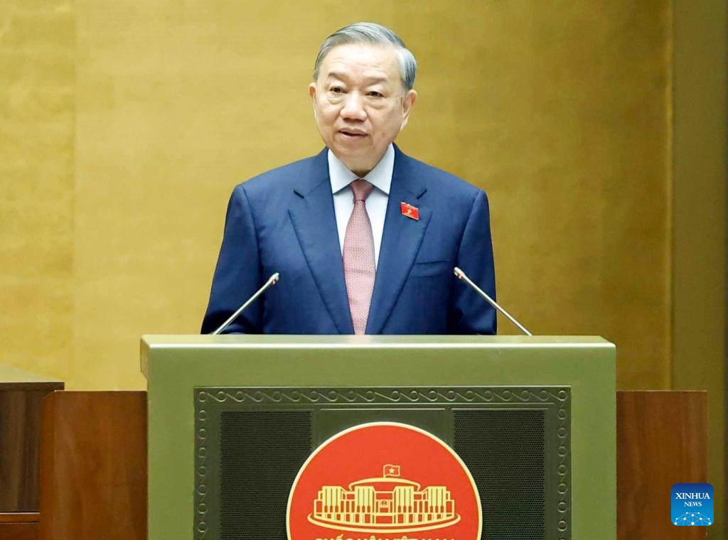 To Lam delivers a speech at the first session of the 16th National Assembly in Hanoi, Vietnam, April 6, 2026. To Lam, general secretary of the Communist Party of Vietnam Central Committee, was elected Vietnam's state president at the first session of the 16th National Assembly, the country's top legislature, on Tuesday. (VNA via Xinhua)