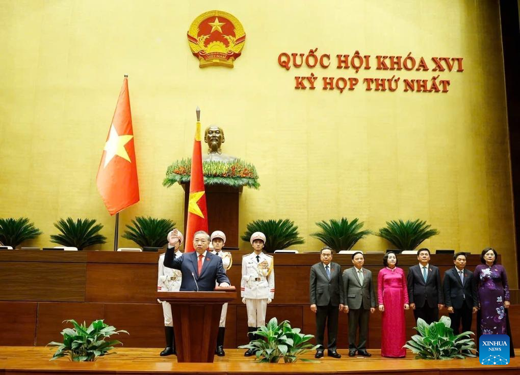 To Lam takes the oath of office as Vietnam's state president in Hanoi, Vietnam, April 7, 2026. To Lam, general secretary of the Communist Party of Vietnam Central Committee, was elected Vietnam's state president at the first session of the 16th National Assembly, the country's top legislature, on Tuesday. (VNA via Xinhua)