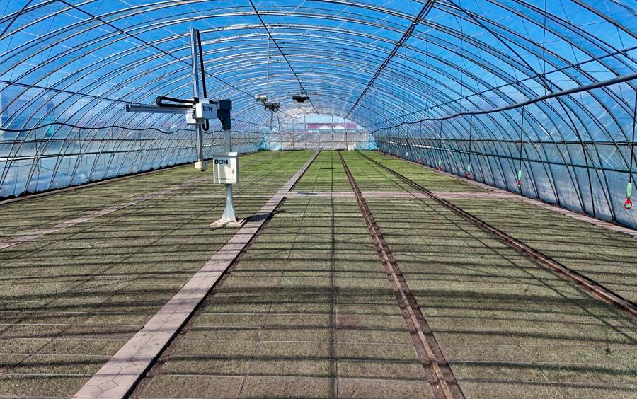This photo taken on April 9, 2026 shows an interior view of a rice cultivating greenhouse of Youyi Farm Co., Ltd. under Beidahuang Group in Shuangyashan, northeast China's Heilongjiang Province. (Xinhua/Wang Song)