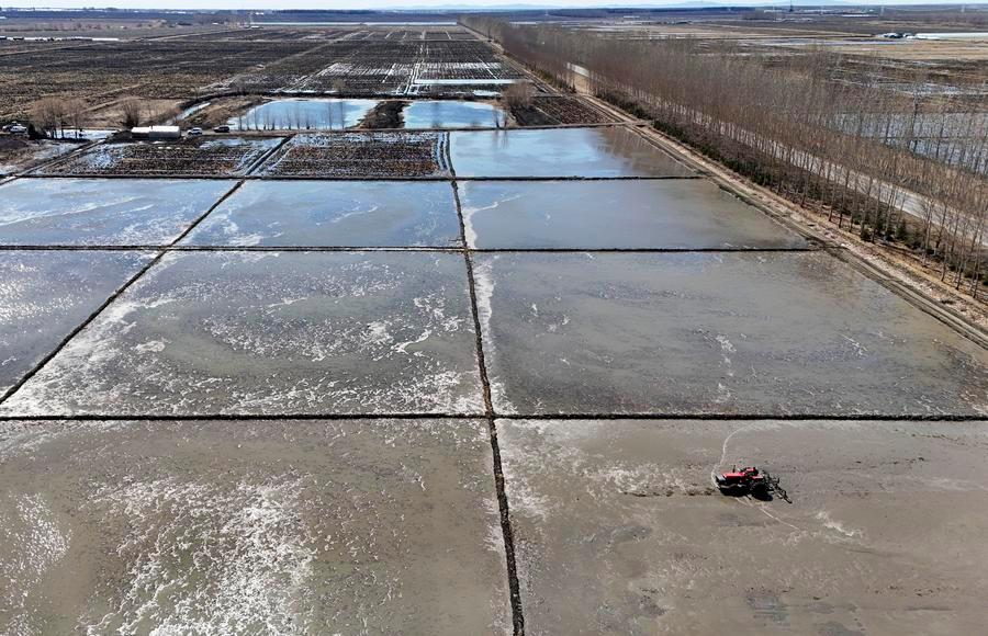 SHUANGYASHAN, April 10 (Xinhua) -- Northeast China's Heilongjiang Province, a major grain-producing area in China, has entered the spring ploughing season for rice.