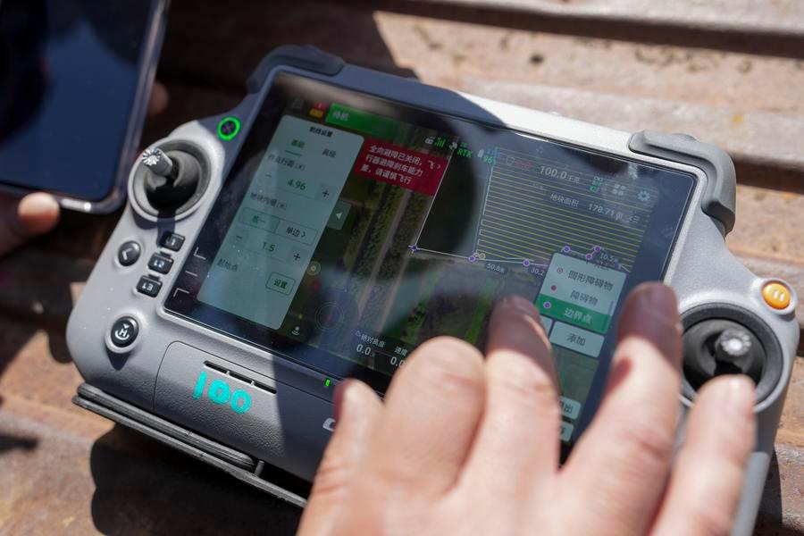 A farmer operates an agricultural drone to spray fertilizer onto paddy fields of Youyi Farm Co., Ltd. under Beidahuang Group in Shuangyashan, northeast China's Heilongjiang Province, April 9, 2026. (Xinhua/Wang Song)