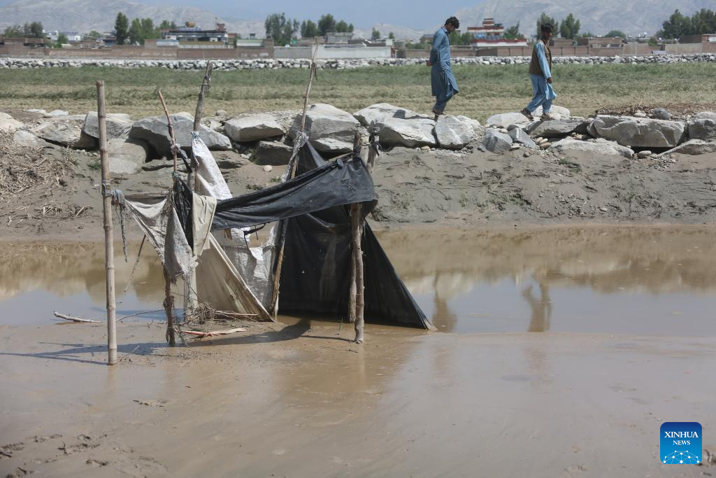 This photo taken on April 13, 2026 shows a scene at a flood-affected area in Nangarhar province, Afghanistan. Nearly 200 people have been killed due to rainstorms and flooding across Afghanistan over the past 18 days, a spokesman of the country's National Disaster Management Authority said. (Photo by Saifurahman Safi/Xinhua)