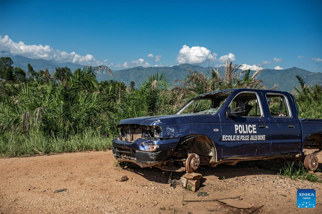An abandoned police vehicle is pictured near Uvira, a city in South Kivu Province in the eastern Democratic Republic of the Congo (DRC), on Dec. 14, 2025.