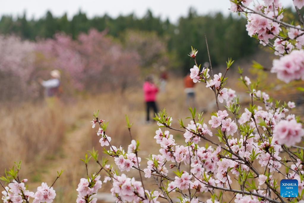 Peach flowers are seen in Shangjiao Village, Zibo City of east China's Shandong Province, April 9, 2026. (Xinhua/Zhu Zheng)
