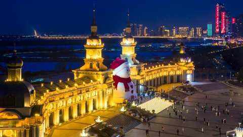 Tourists visit Central Street in Harbin, China's Heilongjiang