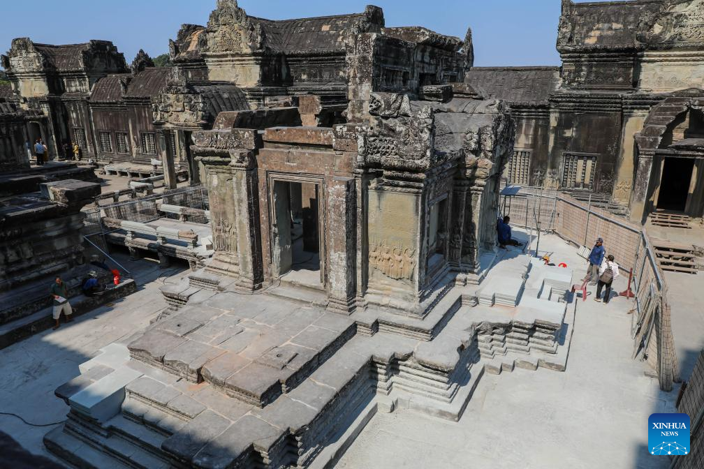 PHNOM PENH, April 6 (Xinhua) -- Archaeologists had successfully completed the restoration of a northern library located on the second level of the iconic Angkor Wat in Cambodia's Angkor Archaeological Park, said an APSARA National Authority (ANA) news release on Monday.