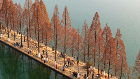 People enjoy metasequoia tree leaves in Changsha, China's Hunan