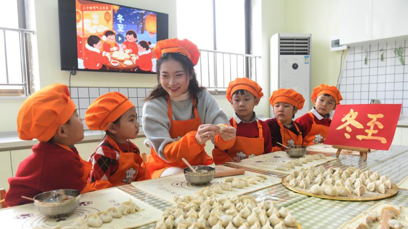 Children at kindergarten in N China learn to make dumplings ahead of Winter Solstice