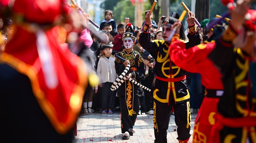 Yingge dance staged in S China's Guangdong to convey best wishes for new year