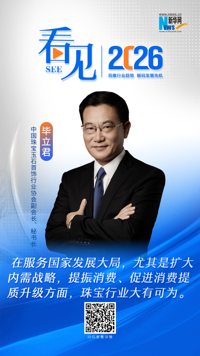 《看见2026》系列访谈邀请了中国珠宝玉石首饰行业协会副会长、秘书长毕立君,深入解读2025年中国珠宝行业的发展态势,展望2026年行业高质量发展的动能与方向。