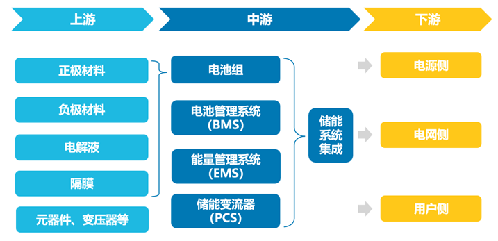 从下游来看,无论是在电力的生产环节(电源侧),还是传输分配环节(电网侧),亦或是最终的消费环节(用户侧),储能均发挥着重要的作用——