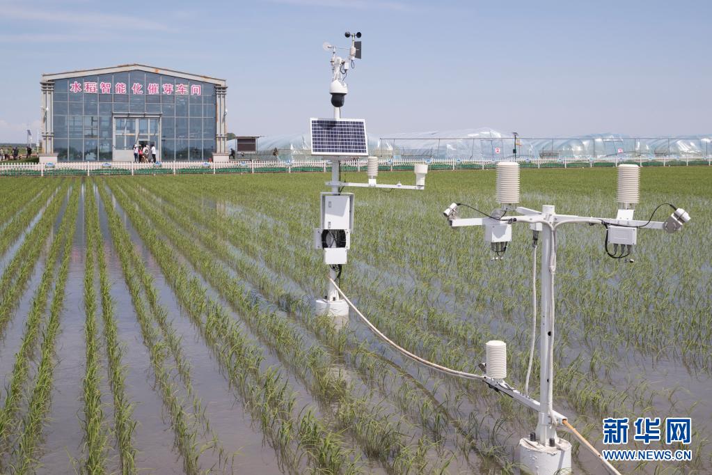 黑龍江省富錦市東北水田現代農機專業(yè)合作社稻田里的專業(yè)設備(2020年6月12日攝)。