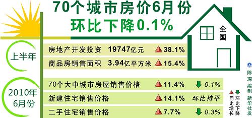 70個(gè)城市房?jī)r(jià)6月份環(huán)比下降0.1%