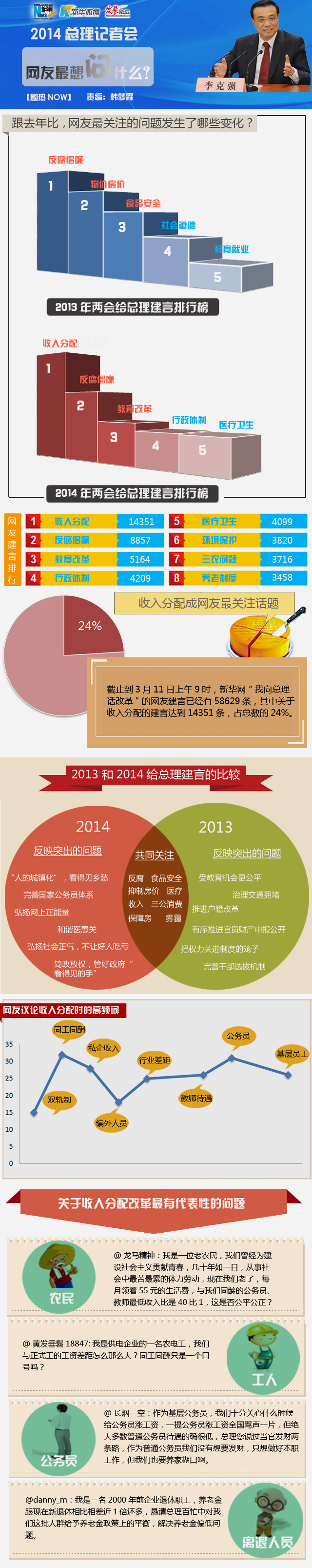 3月13日上午,國務(wù)院總理李克強(qiáng)將與中外記者見面,回答大家的問題。這是李克強(qiáng)總理第二次總理記者會(huì),今年新華網(wǎng)推出了大型互動(dòng)專題"我和總理話改革",收到了數(shù)萬條網(wǎng)友建言,在這些建言中,哪些問題是網(wǎng)友最關(guān)心的,如果是網(wǎng)友在記者會(huì)上提問,他們最想問什么?