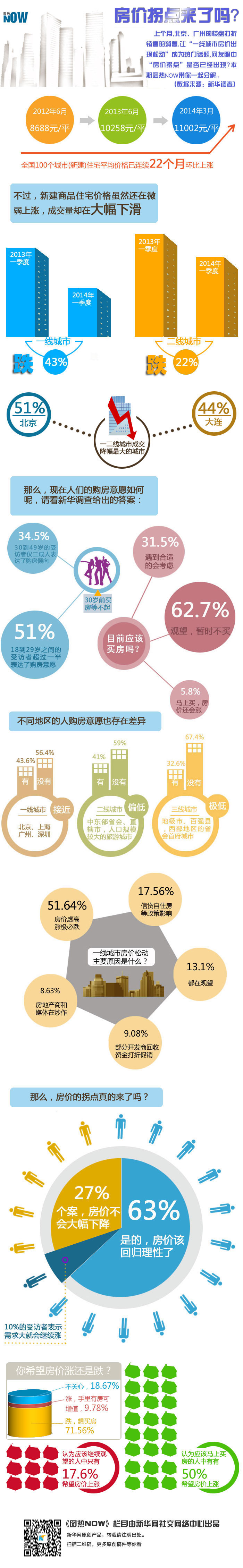 4月1日,中指院發(fā)布2014年3月中國房地產(chǎn)指數(shù)系統(tǒng)百城價格指數(shù)報告,在房價漲幅趨緩的同時,成交量也大幅下滑,上個月,北京、廣州的樓盤打折銷售的消息,讓“一線城市房價出現(xiàn)松動”成為熱門話題,“新華調(diào)查”欄目推出了“一線城市房價是否到了拐點?”的專題調(diào)查,那么,網(wǎng)友眼中“房價拐點”是否已經(jīng)出現(xiàn)?本期圖熱NOW帶你一起分解。