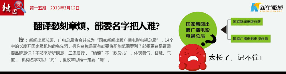 @霸氣外漏:【交通部也改了吧!】建議全稱為“國家新聞出版廣播電影電視微博微信彩信總管理局”,交通部應(yīng)該為“國家汽車火車飛機(jī)輪船摩托自行車部” 。