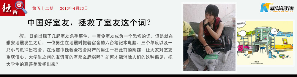 【室友中的戰(zhàn)斗機(jī)】 人固有一室友,或投毒殺人,或拯救其余室友電腦六臺單反三臺烏龜一籠于地震之中…… 他一個人拯救了全宿舍的財產(chǎn),對他的敬佩之情猶如滔滔江水連綿不絕!