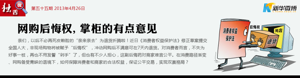 【賣家能有保障嗎?】 網(wǎng)絡是虛擬的,網(wǎng)購卻是實體的。為了防止消費者的惡意退貨,甚至以此為要挾出現(xiàn)職業(yè)退貨族,可以考慮非質(zhì)量問題的無理由退貨收取手續(xù)費。這應該是“后悔權(quán)”對于賣家的一個保障!