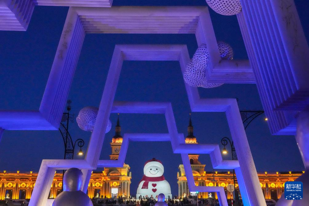 “尔滨”大雪人邂逅蓝调时刻-新华网