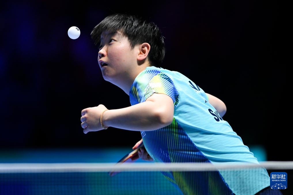 3月30日,中国选手孙颖莎在比赛中回球。